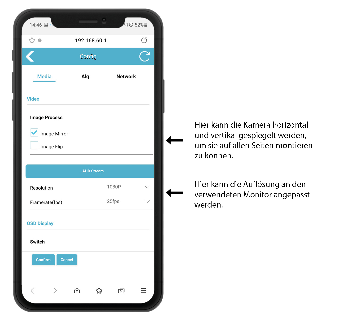 - Device configuration can be saved in the smartphone and easily transferred to the cameras of other vehicles